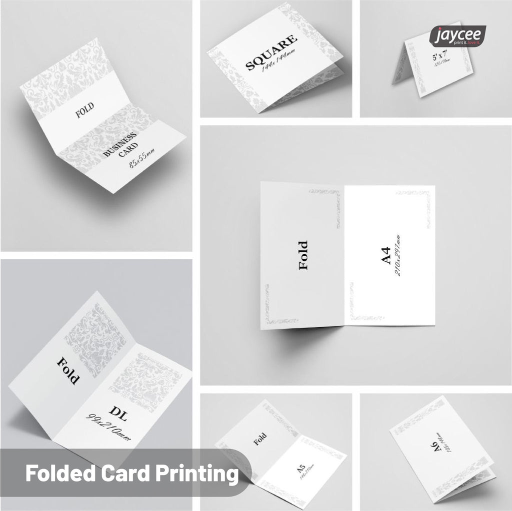 2. We have seven folded card sizes including RSVP-85x110mm, A6-105x148mm, DL-99x210mm, 5"x7"-127x178mm, Square-144x144mm, A5-148x210mm, A4-210x297mm. Note that the open card sizes are double the sizes listed here.